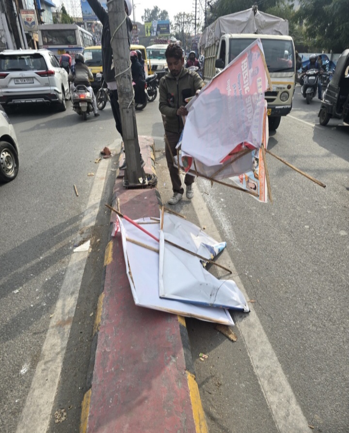 मुख्य मार्ग पर अवैध फ्लेक्सी विज्ञापन हटाए गए, प्रशासन की बड़ी कार्रवाई