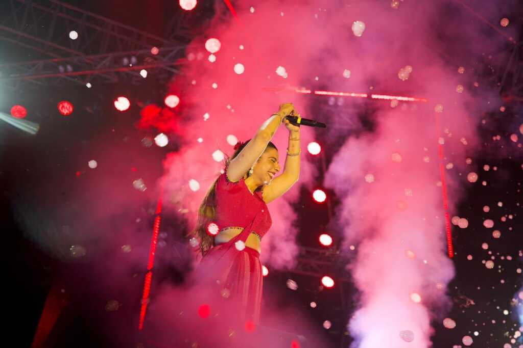 जैस्मीन सैंडलस के मंच पर आते ही माहौल चरम पर पहुंच गया। उन्होंने अपने सुपरहिट गीत ‘सिप-सिप’, ‘शरारत’ और ‘मैं और तू’ की प्रस्तुति देकर दर्शकों को मंत्रमुग्ध कर दिया। हर गीत के साथ युवाओं का उत्साह और बढ़ता गया, पूरा परिसर मानो संगीत की लहरों में डूब गया।