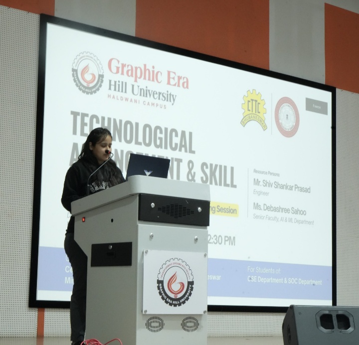 दूसरी वक्ता सुश्री देबाश्री साहू, जो सीटीटीसी भुवनेश्वर में एआई-एमएल एवं डेटा एनालिटिक्स की वरिष्ठ फैकल्टी हैं, ने एआई-एमएल के वर्तमान रुझानों, करियर संभावनाओं तथा आवश्यक कौशलों पर विस्तार से चर्चा की। उन्होंने विद्यार्थियों को बताया कि तकनीकी क्षेत्र में निरंतर सीखना और स्वयं को अद्यतन रखना सफलता की कुंजी है। सुश्री साहू, जो एक यूआई/यूएक्स डिज़ाइनर भी हैं, Google Developer Groups Bhubaneswar की कोर डिज़ाइन टीम की सदस्य हैं। उन्होंने विद्यार्थियों को उद्योग की अपेक्षाओं के अनुरूप स्वयं को तैयार करने तथा नवाचार आधारित अधिगम अपनाने के लिए प्रेरित किया।