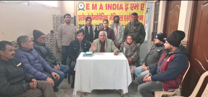 हरिद्वार 24 दिसंबर। इंडियन मेडिकल एसोसिएशन (ईएमए) से जुड़े चिकित्सकों की एक महत्वपूर्ण बैठक ईएमए के केंद्रीय कार्यालय ज्वालापुर में आयोजित की गई। बैठक को संबोधित करते हुए ईएमए के राष्ट्रीय अध्यक्ष डॉ. के. पी. एस. चौहान ने बताया कि आगामी 11 जनवरी को इलेक्ट्रोहोम्योपैथी के आविष्कारक काउंट सीजर मैटी की 217वीं जयंती को राष्ट्रीय इलेक्ट्रोहोमियोपैथी दिवस के रूप में भव्य समारोह के साथ मनाया जाएगा।